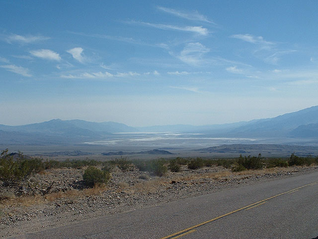 Das Tal "Death Valley" mit 200 km Länge und 30 km Breite - in der Mitte (weiß) der Salzsee