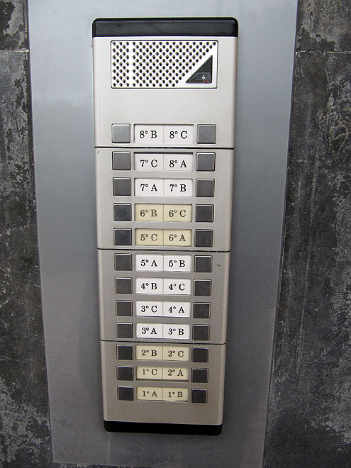 Bei diesem Klingelbrett muß man genau wissen wer wo wohnt ... Namen sind überflüssig