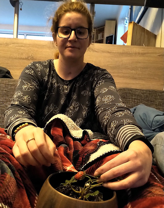 Im April (soooo lange ist der letzte Beitrag schon her) hatte Stephanie die Ehre, unsere erste und einzige Inhouse-Erdbeere zu pflücken … die Pflanzen standen zu dem Zeitpunkt in der Wohnung, weil das Wetter noch sehr winterlich und vor allem kalt war – ganz anders als jetzt gerade 😉