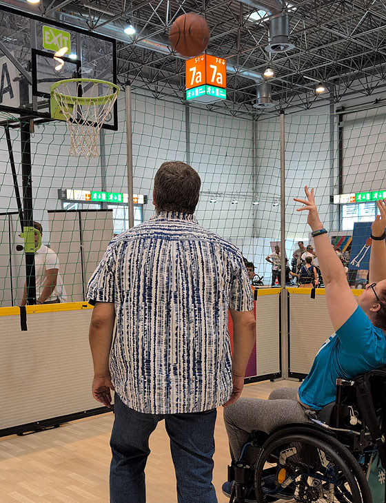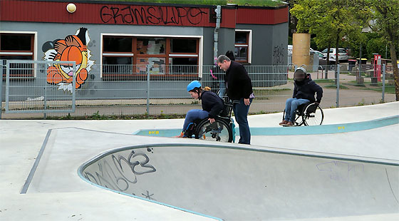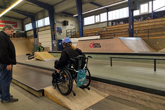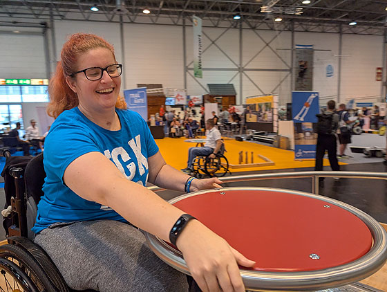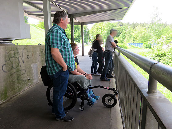 Von ihrem eigens für „Hilfsmittelnutzer“ errichteten Rollitribüne …