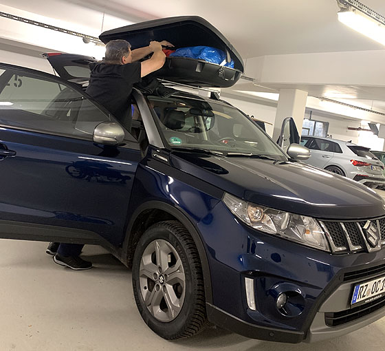 Und dann musste Carsten am 25.4. auch schon die von Stephanie als „Miniauto“ getaufte Dachbox aufs Auto schrauben, denn wir wollten ein verlängertes Wochenende in Berlin ohne den klobigen Anhänger verbringen, um eine ganz große Show zu sehen und vor allem verschiedene Freunde aus ihrer alten Zeit in Potsdam zu besuchen: