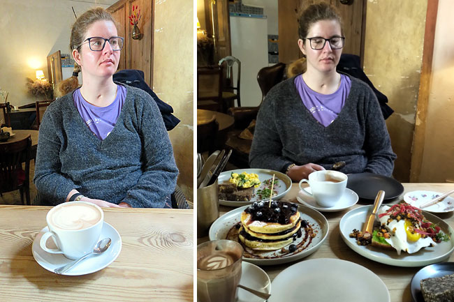 Vielen lieben Dank an das Café „Zimt & Zucker“ für die nette Geste und natürlich auch das superleckere Frühstück – Stephanie guckt nur so enttäuscht, weil sie sich mal wieder überhaupt nicht entscheiden konnte, was sie als erstes probieren soll – unsere Entscheidungsneurotikerin eben: