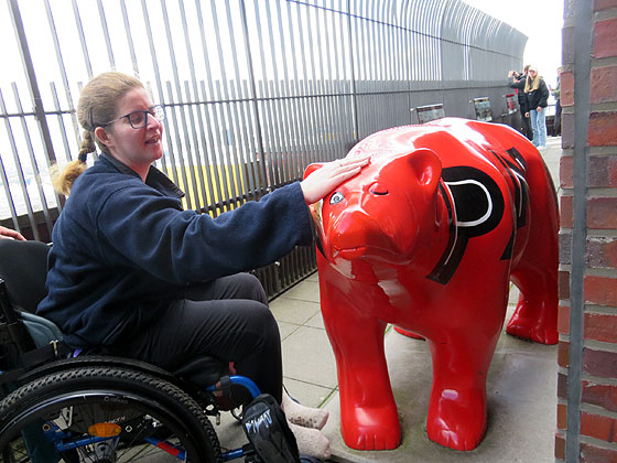 Einen Überblick über Berlin verschafften wir uns am „Panoramapunkt“ hoch über der Stadt, wo Stephanie sogar einen Berliner Bären streicheln konnte …