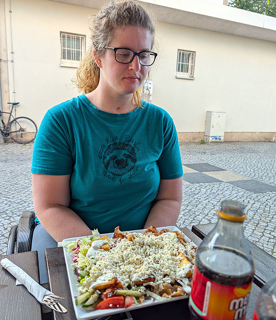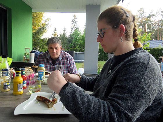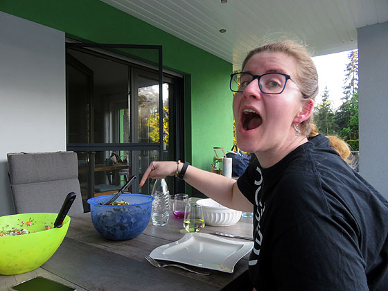 … bevor wir weiterzogen und in Fichtenwalde noch jemanden aus ihrer Volleyballzeit beim SV Babelsberg 03 wiedertreffen konnten. Beim gemeinsamen Grillen freute sich Stephanie wie Bolle auf den selbstgemachten Nudelsalat …