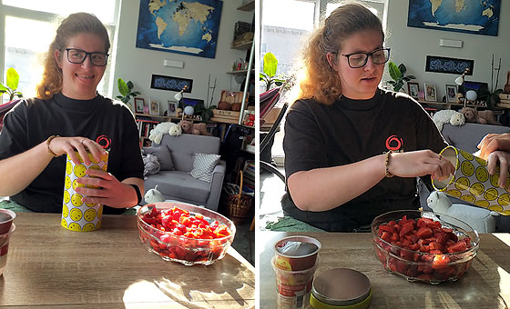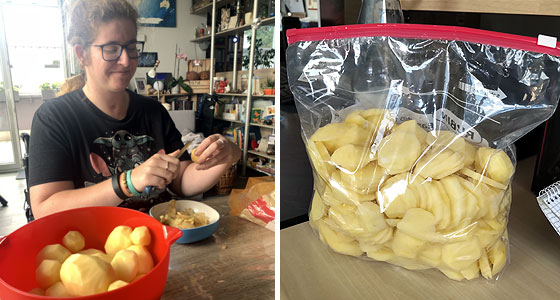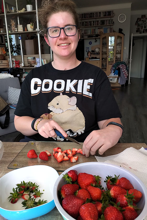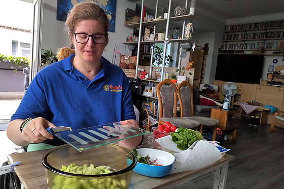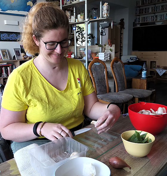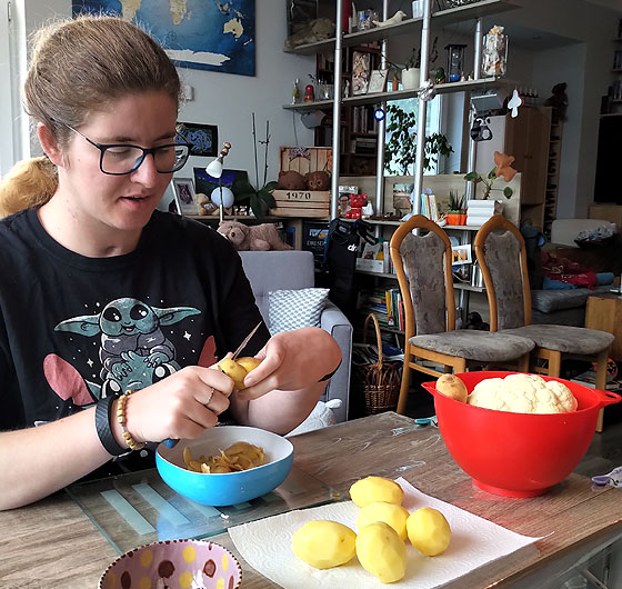 … und für ihre absolute Lieblingsbeschäftigung: Essen vorbereiten. Egal ob Schälen, …