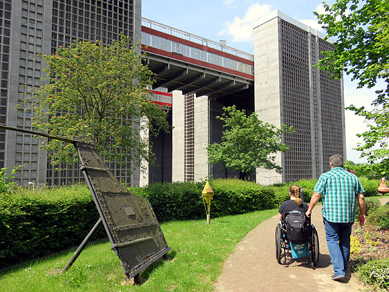 Die insgesamt zwei Tröge mit je 100 m Länge und 6000 t Gewicht überwinden an dieser Stelle des Elbe-Seitenkanals 38 m Höhenunterschied … echt beeindruckend: