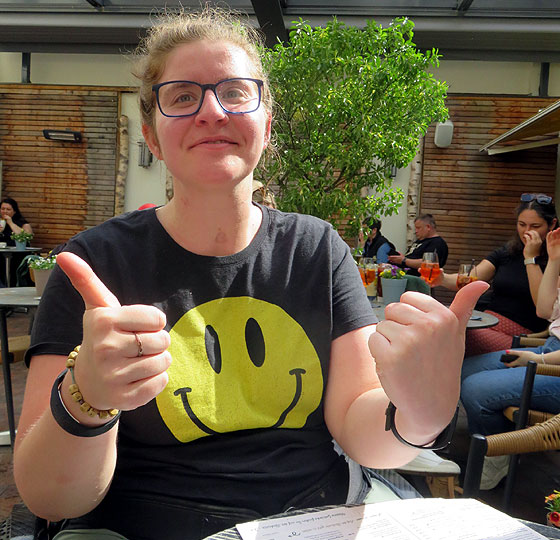 Trotz dieser techniklastigen Umgebung und des dazugehörigen Museums war aber auch unser Kind recht begeistert. Oder bezieht sich diese Geste etwa nur auf das leckere Abendessen im Restaurant in Lüneburg, Stephanie?