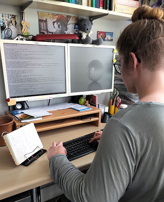 Das Kind tippt für mich gerade mehrere handschriftliche Notizen ab – entweder an meinem Rechner (wenn ich im Büro bin und sie mit Carsten im HomeOffice bleibt) …