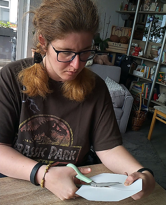 Wir stürzen uns da lieber auf unsere Freizeit und unsere weiterhin durchgeführten und ausgeweiteten Übungsfelder. So haben wir uns zudem einmal mit einer gezielteren Benutzung einer Papierschere beschäftigt: