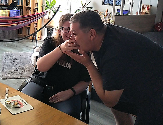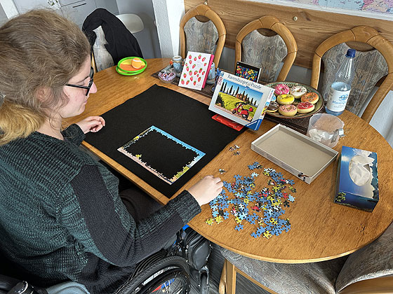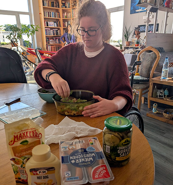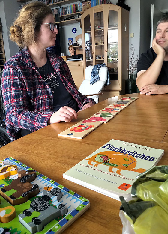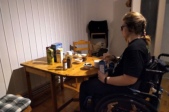 … aber vor allem auch Gleichaltrige, mit denen sie reden und sich austauschen kann. Immer nur mit uns alten Säcken und bei uns in der Residencia OLCA kann ja ebenfalls nicht die endgültige Lösung sein. Leider ist dieses Wohnprojekt namens Festland vom Hamburger Leuchtfeuer noch nicht ganz möglich für unser Kind (eigene Wohnung, eigenständige Versorgung und eigene Pflege- & Therapieorganisation mit angeschlossenem Gemeinschaftsraum inklusive Küchenausstattung), aber für uns war es ein interessantes Aufeinandertreffen mit der Einrichtungsleitung und einigen Bewohnern, bei dem wieder einmal sehr viele nützliche Informationen ausgetauscht wurden und Stephanie vor allem sehen konnte, wohin die Reise einmal gehen könnte. Derzeit sind wir (leider) doch noch auf eine Einrichtung inklusive Essensversorgung und Pflege bzw. Therapie angewiesen.
