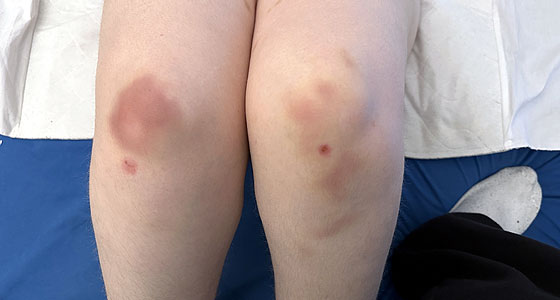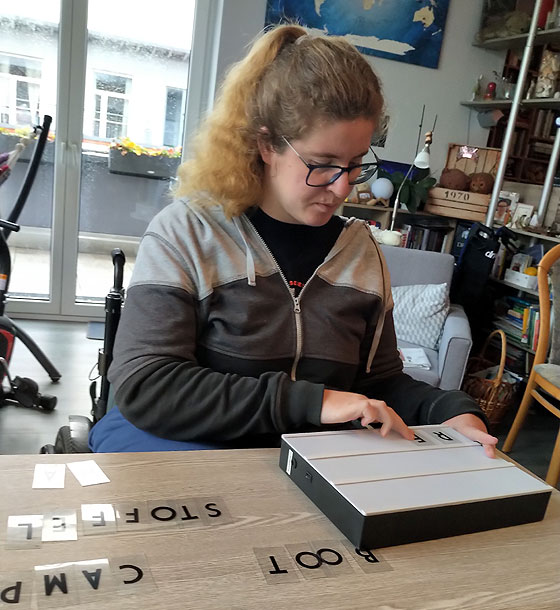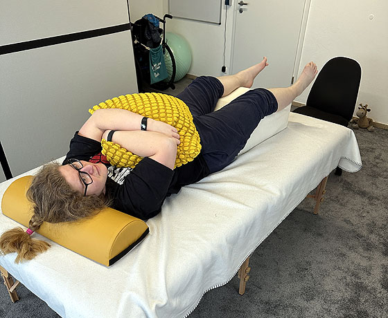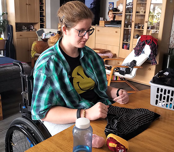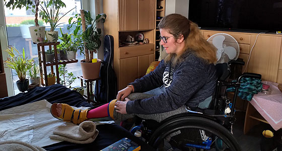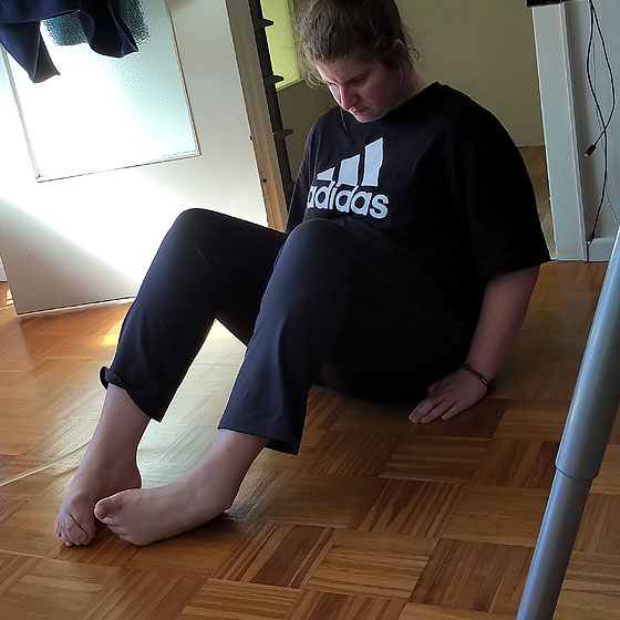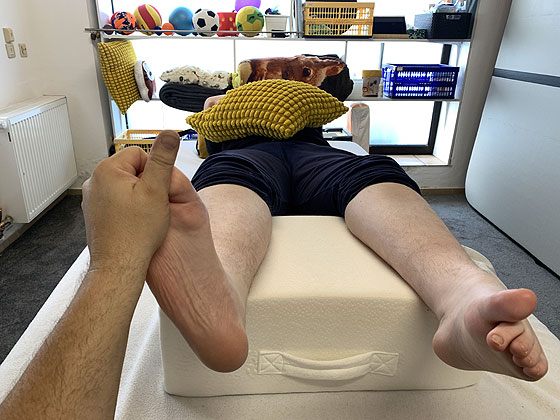 … den stetigen und immer erfolgreicher verlaufenden Versuchen, sich die Orthesen, Schuhe oder Socken auszuziehen, …