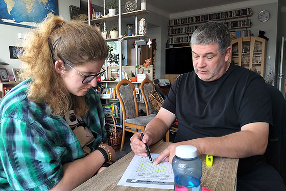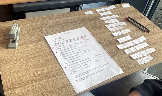… dem kreativen Erledigen von Hausaufgaben (hier mal eine Kombination aus Ausschneiden, Beschriften, Aneinanderlegen und Zusammentackern), …