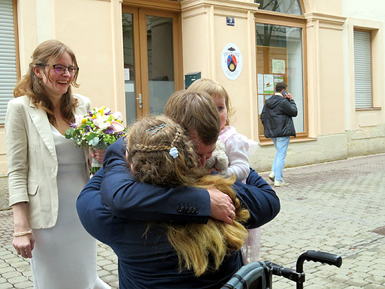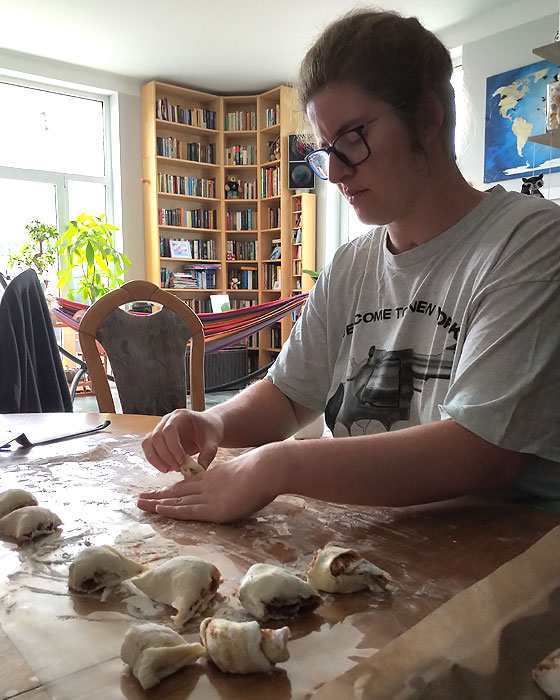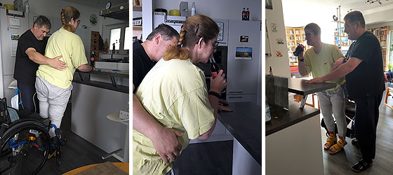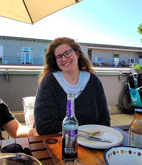 Angekommen in der Sellostraße, schafften wir es, trotz Altbau, knarzender Holztreppe und fehlendem Fahrstuhl gemeinsam Stephanie samt Rolli bis in den ersten Stock zu hieven, damit sie nicht nur ihren ehemaligen WG-Mitbewohner und andere Studienfreunde, sondern auch gleich noch ihre alte Wohnung in Potsdam wiedersehen konnte.