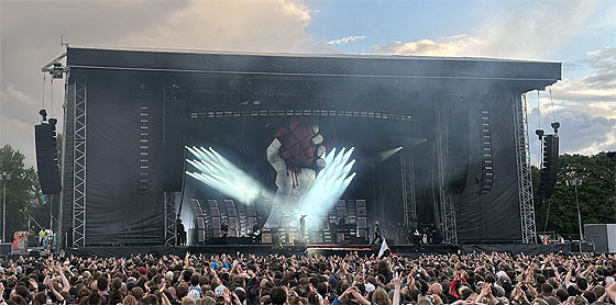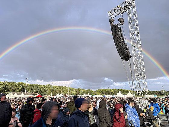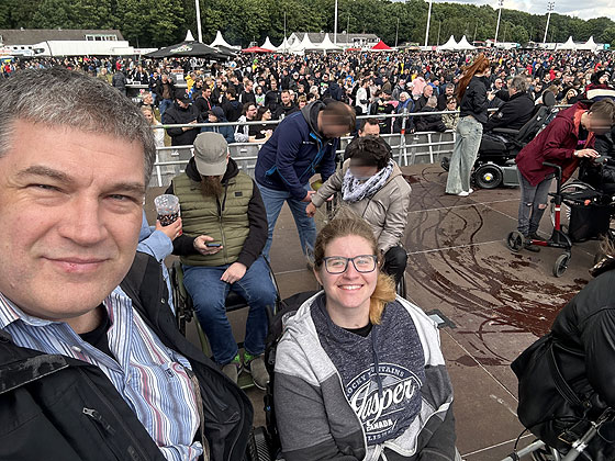 Am Ende klappte an diesem Abend sowieso alles total perfekt, denn sie parkten das Auto direkt neben dem Hauptgebäude der Trabrennbahn, brauchten für den Einlass Dank Rollstuhlsondereingang nur wenig Zeit, wurden nicht einmal gefilzt, hatten als erste Ankömmlinge freie Platzwahl auf dem Rollipodest mit großartigem Blick auf die Bühne, das Wetter blieb zwar spannend aber es hat nie kräftig geschüttet, beide Bands konnten mit ihren Auftritten überzeugen und selbst der Heimweg durch die Massen dauerte trotz der vielen Zuschauern nicht einmal unverhältnismäßig lang. Es war toll! Stimmt’s, Kind?