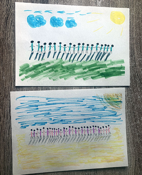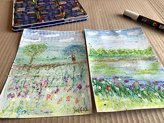 Für Versuch Nummer 3 wechselten wir mal die Technik: Malen mit Pastellölkreide