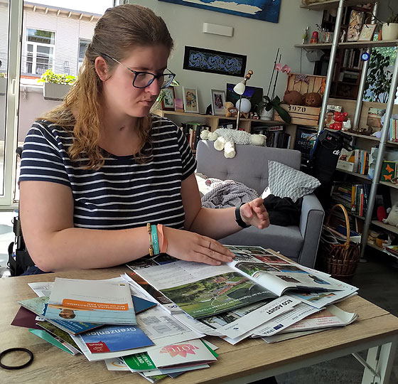 Selbst zuhause hat sich Stephanie noch einmal alle unsere Mitbringsel vorgenommen und fleißig in den Katalogen und Infobroschüren geblättert, u.a. auch in der vom Zugrad: