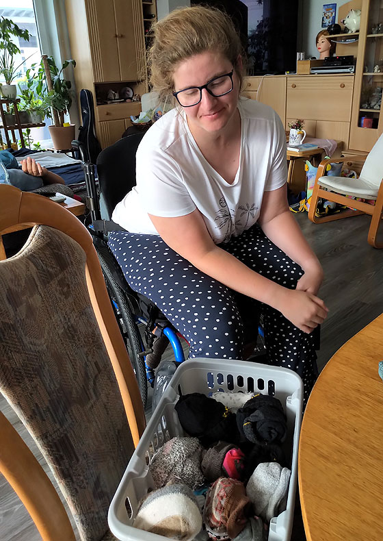 Hier folgt nun der nächste Fortschritt: Stephanie hat ja schon vor längerer Zeit mal damit angefangen, sich um unsere gewaschenen Socken zu kümmern. Angefangen haben wir mit dem parallelen Auslegen und danach das Einrollen, doch der entscheidende Schritt des Umstülpens hat nie geklappt. So war es auch noch Mitte Mai: