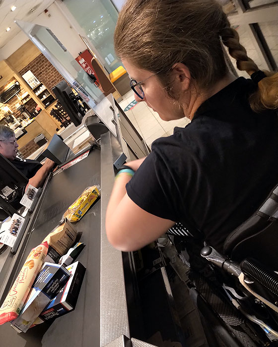 Unsere Einkaufrituale bleiben weiterhin gleich: Stephanie ist Frau über den Einkaufszettel und streicht ab oder liest uns vor, was wir dann suchen und ranschaffen müssen: