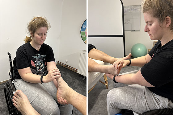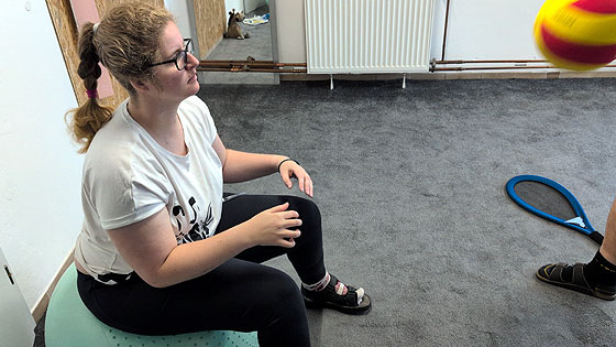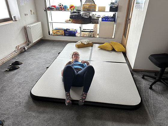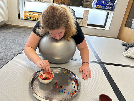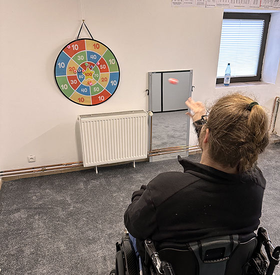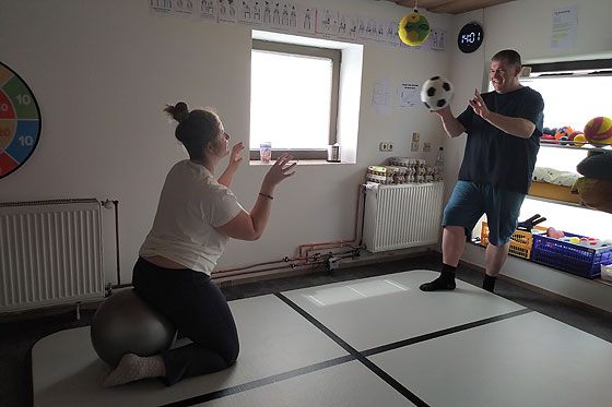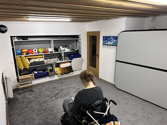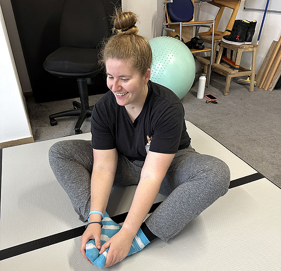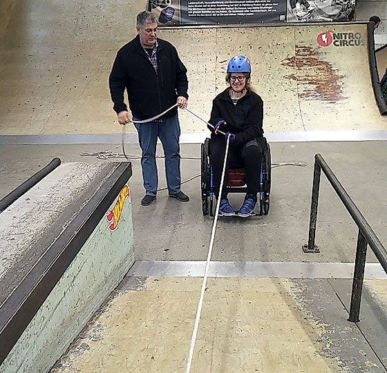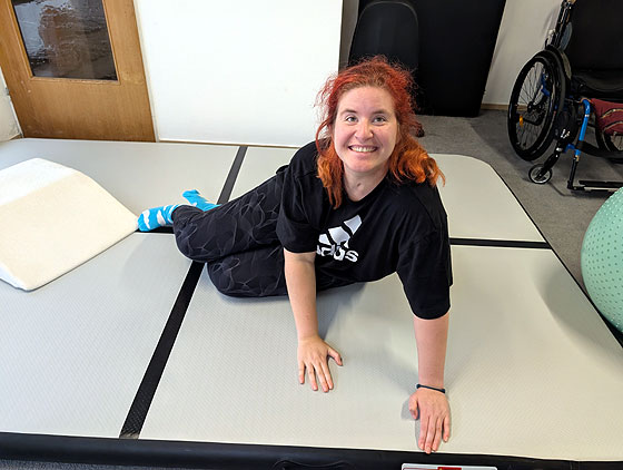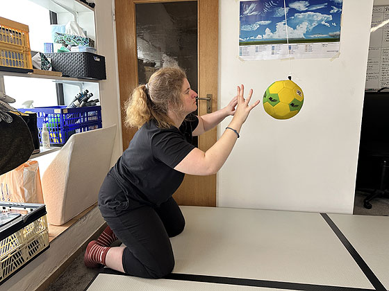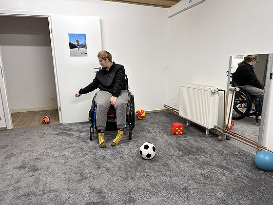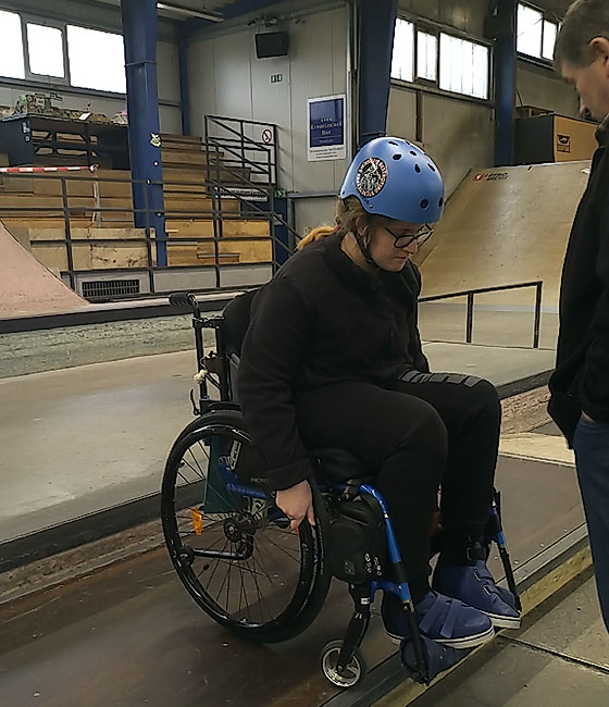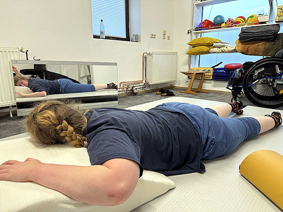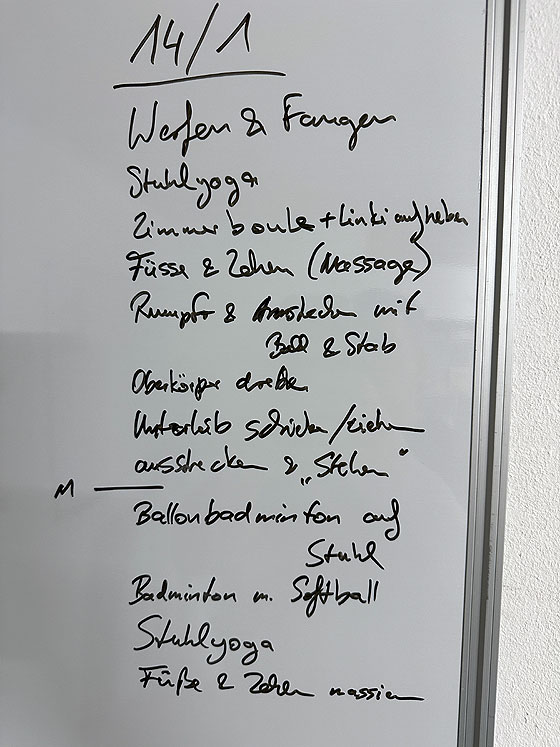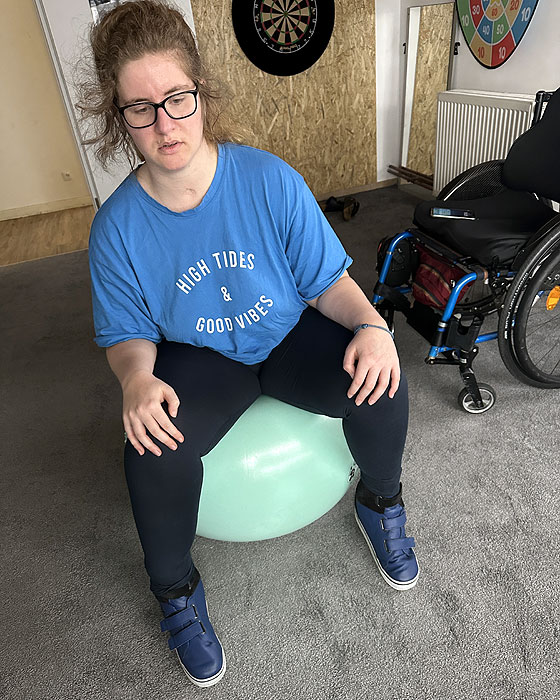 Auch beim Standing sind wir weiter drangeblieben und fördern immer mehr das selbstständige Aufstehen aus dem Rollstuhl – anfangs noch verstärkt mit Festhalten und Hochziehen: