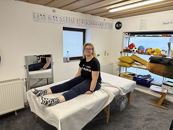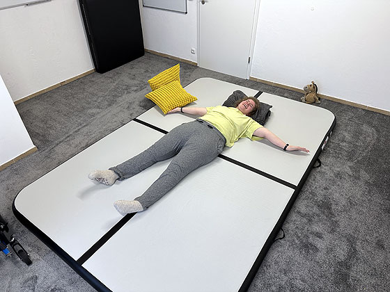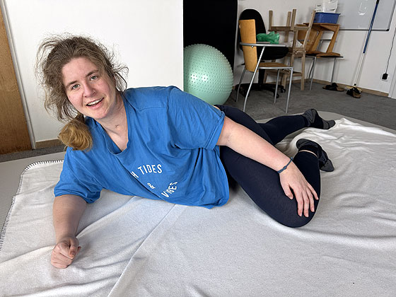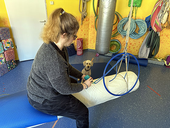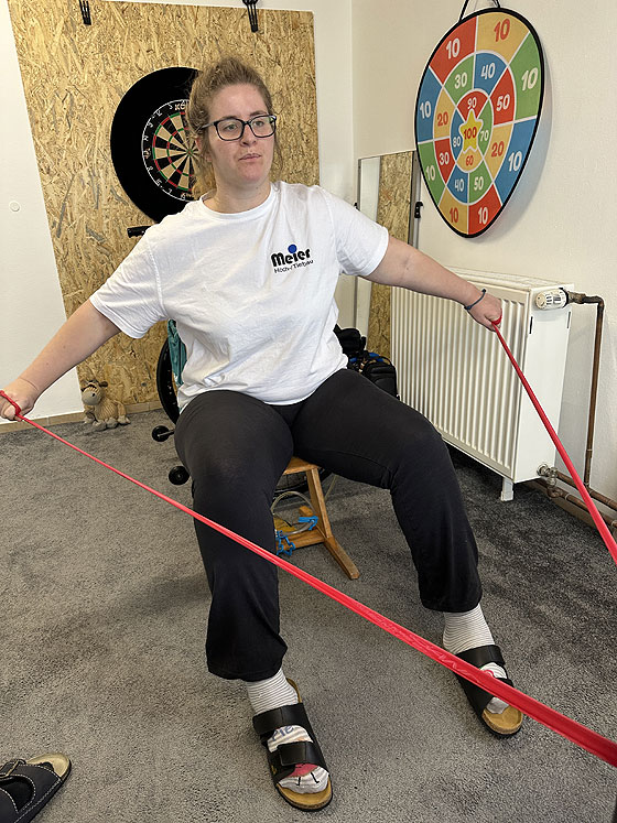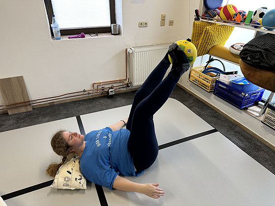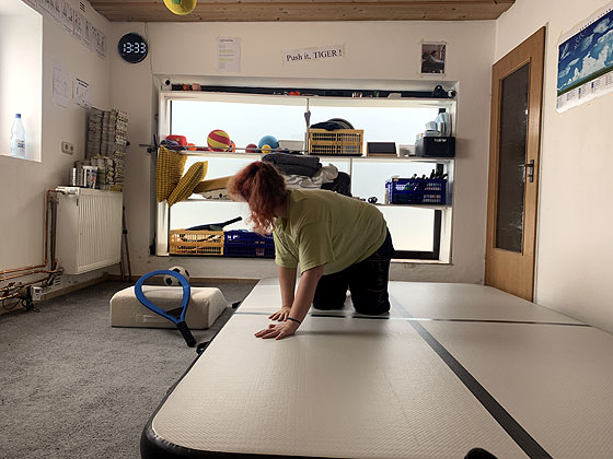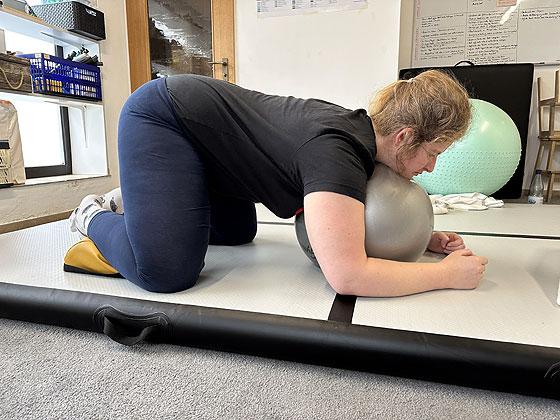 Später haben wir allerdings zunehmend darauf geachtet, dass sie sich aus den Knien heraus nach oben drückt und weniger an den Armen nach vorne zieht: