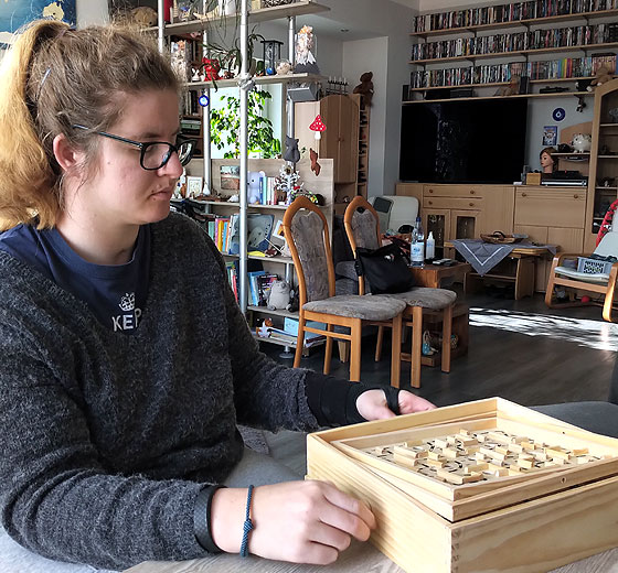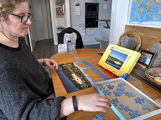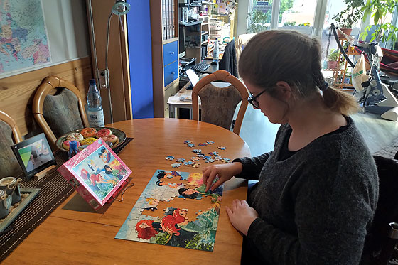Während der letzten Wochen hat sie sich zudem sehr mit dem zugegeben etwas älteren Spiel „Mahjongg“ beschäftigt. Sie hatte es nach einer kurzen Erklärung durch Carsten superschnell drauf und wird bis heute nicht müde, die richtigen Steinchenpaare zu finden und das vorgegebene Gebilde Schicht für Schicht abzutragen. War zum Glück mal eine sehr gute (Beschäftigungs-)Idee von mir 😉
