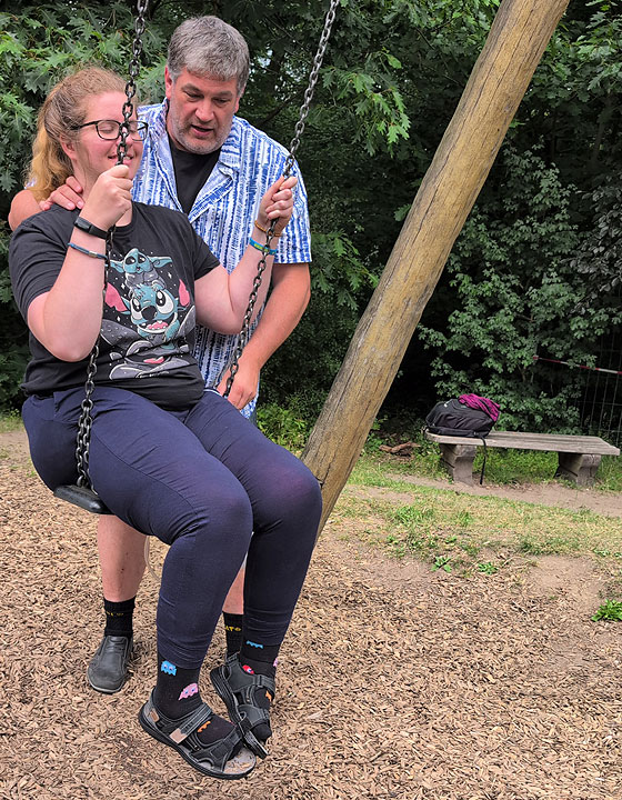 Zwar wären wir zunächst einmal nur an der sehr viel kleineren Version (6 km/h & 1 Akku) interessiert und unser Kind hatte auch noch arge Probleme mit dem mofaähnlichen Lenker (ein Mofa oder Fahrrad kennt sie ja überhaupt nicht), mit dem zu drehenden Gasgriff und den beiden Handbremsen sowie einer korrekten Lenkweise, aber sie ist dennoch weiterhin interessiert und hat gar ein wenig Blut geleckt. Wir können deshalb hoffentlich bald für ein paar Tage eine Leihstellung bekommen, sodass Stephanie diese Art der neuen Fortbewegung auf Herz und Nieren testen kann und wir beim Kauf sicher sein können, dass dieses, leider auch mehrere tausend Euro teure Zusatzgerät am Ende nicht nur in der Ecke stehen wird. Für uns jedenfalls sehen wir darin eine neue Art des Spazierengehens, denn wir könnten so etwas flotter und vor allem beide mit freien Händen unterwegs sein. Einen alleinigen Ausritt damit sehen wir bei Stephanie aber noch lange nicht, doch vielleicht hilft diese Art der Mobilität zudem noch mehr beim Wiedererlangen ihrer Orientierung – wir wollen dem Gadget auf jeden Fall eine faire Chance geben. Ich werde euch diesbezüglich auf dem Laufenden halten, versprochen.