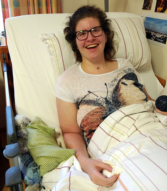 Am Dienstag musste sie während unserer Besuchszeit leider im Bett bleiben, da sich der Neurologe angekündigt hat, um ihr eine weitere Botox-Behandlung zu Gute kommen zu lassen. Stephanies linke Hand sowie beide Füße werden es ihm sicherlich danken, denn die damit einhergehende Entspannung sollte auch zu sehr viel weniger Tonus und Anspannungsschmerz verhelfen. Und wir haben an dem Nachmittag die Zeit im Liegen auch so ganz gut herumgebracht: