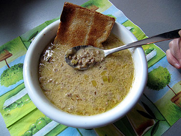 Zutaten bis auf den Käse in einen großen Topf geben und mit der Fleischbrühe