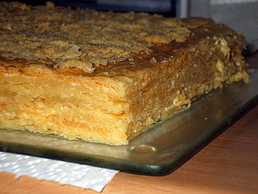 Teigplatte ist dann fertig, wenn sie eine hellbraune Farbe annimt. Die Teigplatte