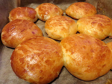 der Pampuschki mit dem Eigelb bestreichen und danach noch weitere 50 min gehen