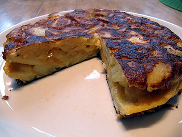 in etwa dem Durchmeser der Pfanne entspricht, die Tortilla umdrehen. Dafür