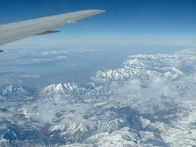 Die ehemalige Olympiastadt Salt Lake City aus dem Flugzeug heraus fotografiert