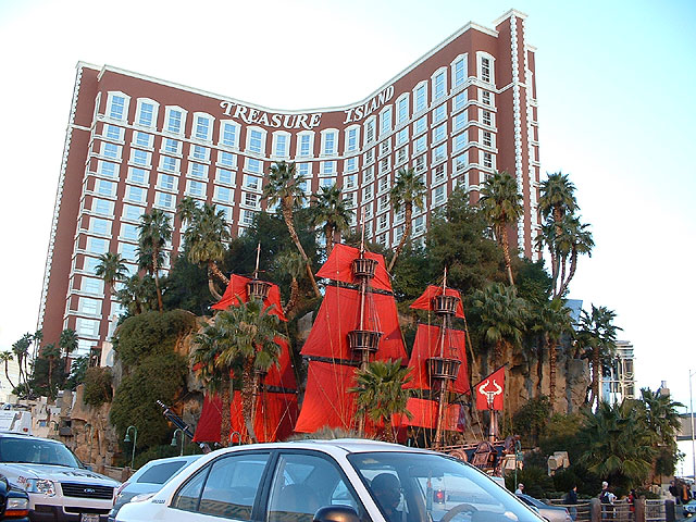 Das Treasure Island und eines der Schiffe, welches jeden Abend als Bühne dient