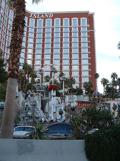 Das Treasure Island und eines der Schiffe, welches jeden Abend als Bühne dient