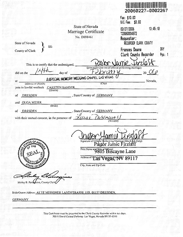 Die ausgefüllte Heiratsurkunde wird im Clark County Government Center abgegeben
