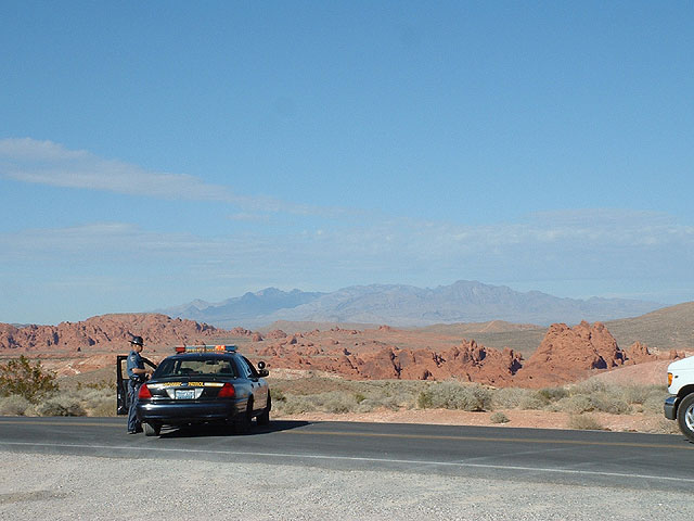 Ein Nevada Trooper bei der Arbeit - so sperrt man hier eine Straße