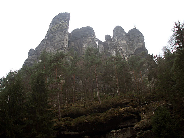 Normalerweise stehen wir mit Gästen da oben und gucken von der Bastei herunter ...