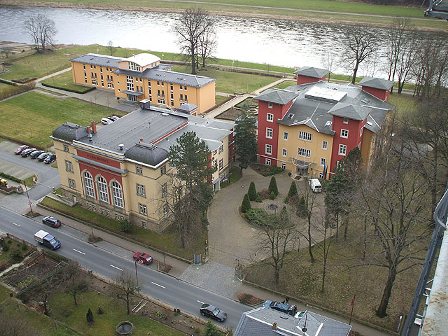 Ein Blick von oben auf unser gestriges Candle-Light-Dinner-Restaurant und das Parkhotel