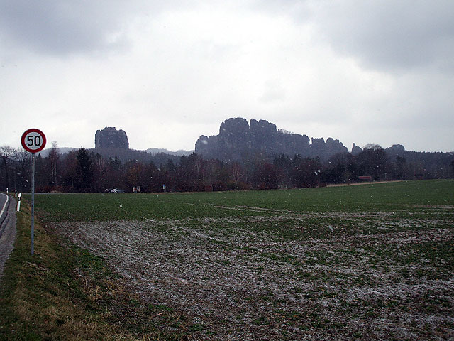 Trotz Schneetreiben hatten wir unser Ziel eigentlich schon vor Augen ... die Schrammsteine