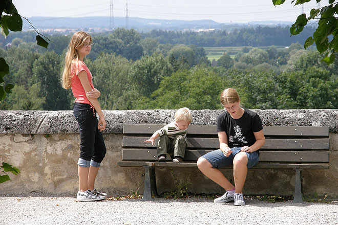 Während die Erwachsenen quatschen und fotografieren nutzt die Jugend die Laufpause