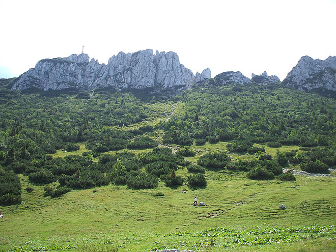 In der Mitte sieht man das Geröllfeld ... die letzten Höhenmeter bis zum Gipfelkreuz