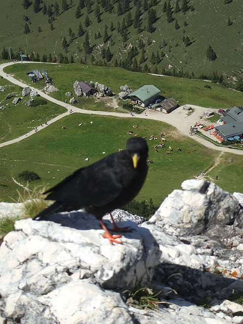 Links kommt der Panoramaweg von der Seilbahnstation zur Steinling-Alm (rechts)
