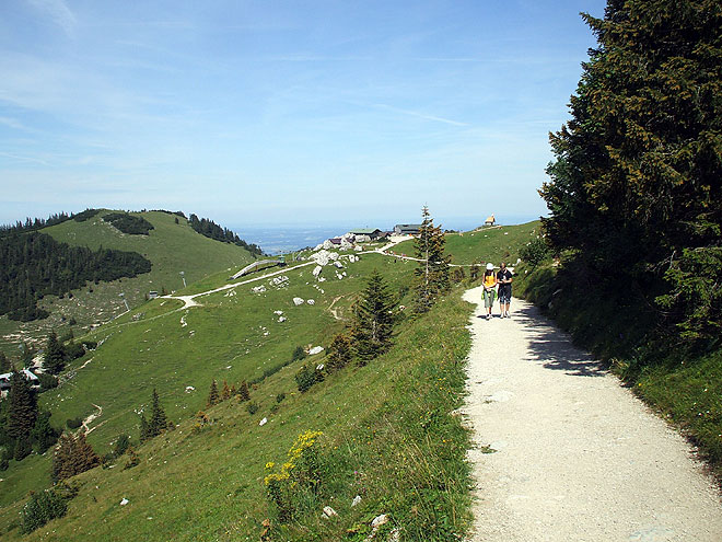 Der Panoramaweg - im Hintergrund Steinling-Alm und Kapelle (rechts)
