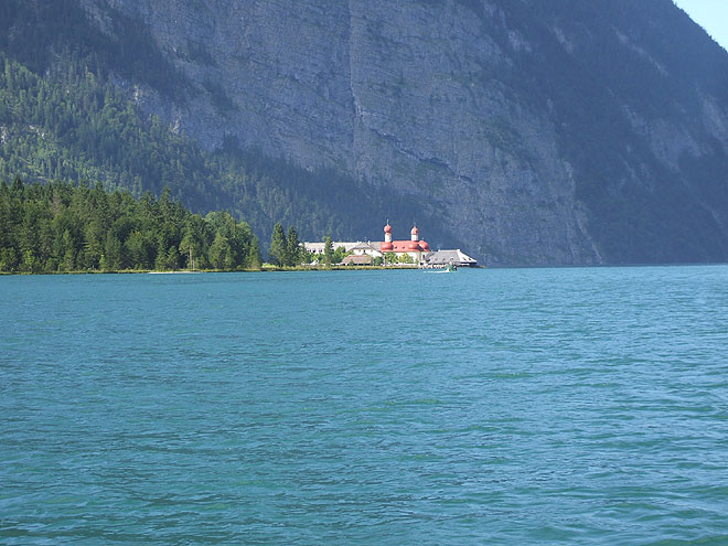 Zurück zum Parkplatz in Königssee tuckerten wir noch einmal an St. Bartholomä vorbei