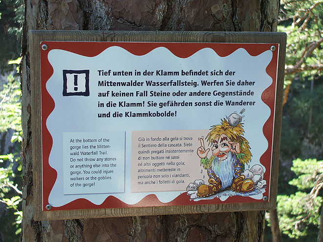 Hinweisschild für Unverbesserliche ... wir sind damit oberhalb des Wasserfalls aus Bild 6