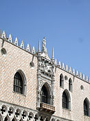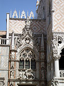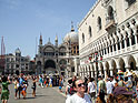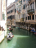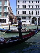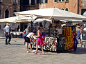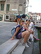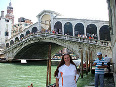 konnten wir uns endlich orientieren und liefen daher schnur- stracks zu den berühmtesten Plätzen. Und siehe da, schon bald stan- den wir vor der Rialtobrücke. Sehr unansehnlich fanden wir die zahl- reichen Graffiti-Kritzeleien an der Brücke, sie wirkte insgesamt etwas vernachlässigt und schmuddelig für eine weltberühmte Sehenswürdig- keit. Im Fernsehen oder auf den Postkarten bekommt man ganz offen- sichtlich entweder nur die Schokoladenseite präsentiert oder man ver- bessert den Eindruck mittels Bildbearbeitung. Bezüglich bekannter Fakten über Venedig sind wir uns aber auf jeden Fall einig: der von vielen Sommerbesuchern dieser Stadt beschriebene Gestank war bei unserem Besuch nicht da! |