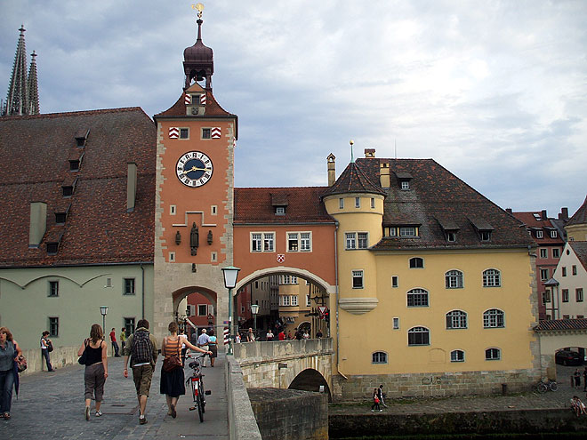 Das Stadttor am Ende der Steinernen Brücke (links ansatzweise der Salzstadel)