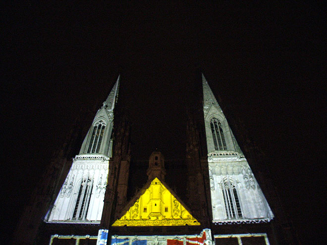 ... folgten die Erklärungen zu den verschiedenen Bauphasen in Licht und Ton.