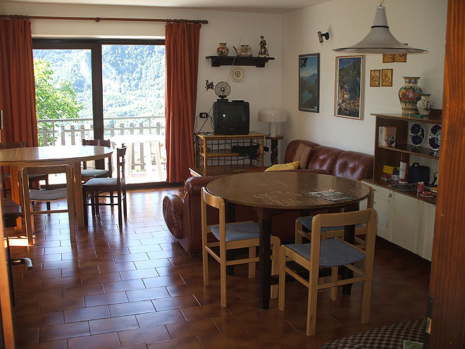 Unser Wohnzimmer: links der Esstisch und im Vordergrund unser Lese-Schreib-Laptoptisch
