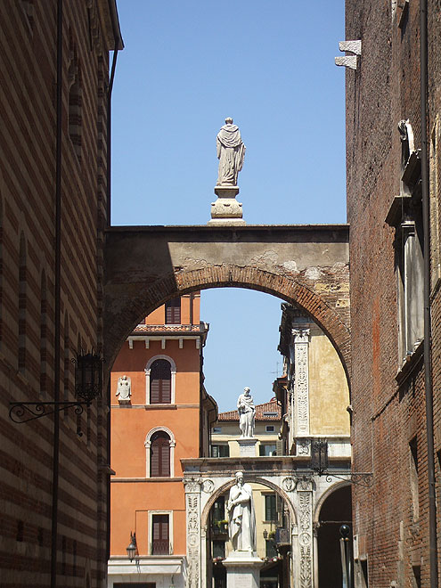 Durch diese Torbögen hindurch sieht man schon die Dante-Skulptur ...